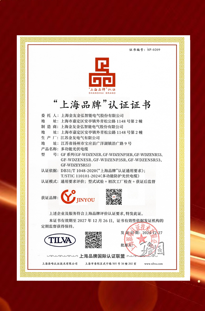 上海金友金弘智能电气股份有限公司总部设立在中国上海,公司成立于2006年,业务100%聚集于新能源行业用的特种电缆、以及电气集成产品。公司集研发、制造、销售为一体,也承接海内外分布式光伏发电项目。我们企业是中国工信部第一批“专精特新”小巨人企业,也是国家重点小巨人企业。我们拥有上海市“名牌产品”称号,也获得工信部“标准化示范试点企业”称号。我们拥有二十余项发明专利及一百多项实用新型专利,2022年金友荣获了上海市科技进步三等奖。公司起草了中国第一部光伏电缆行业标准,金友产品从电力电缆到光伏电缆到新能源汽车电缆再到储能专用电缆;从电缆产品线到光伏电站的电气集成,从变压器到箱逆变一体机到储能变流升压一体机。在新能源市场中,金友给客户提供最安全、最信赖、最节能、最优质、最便捷的产品。